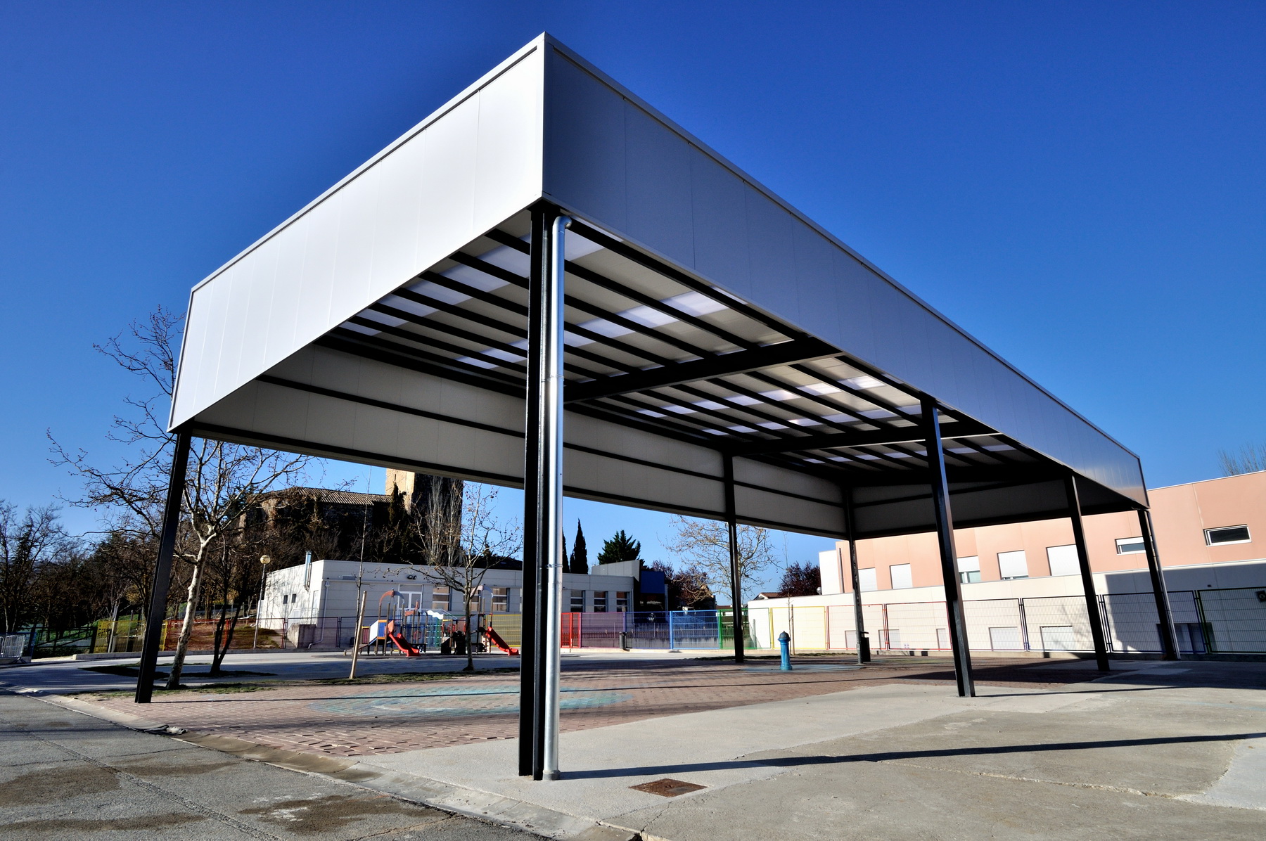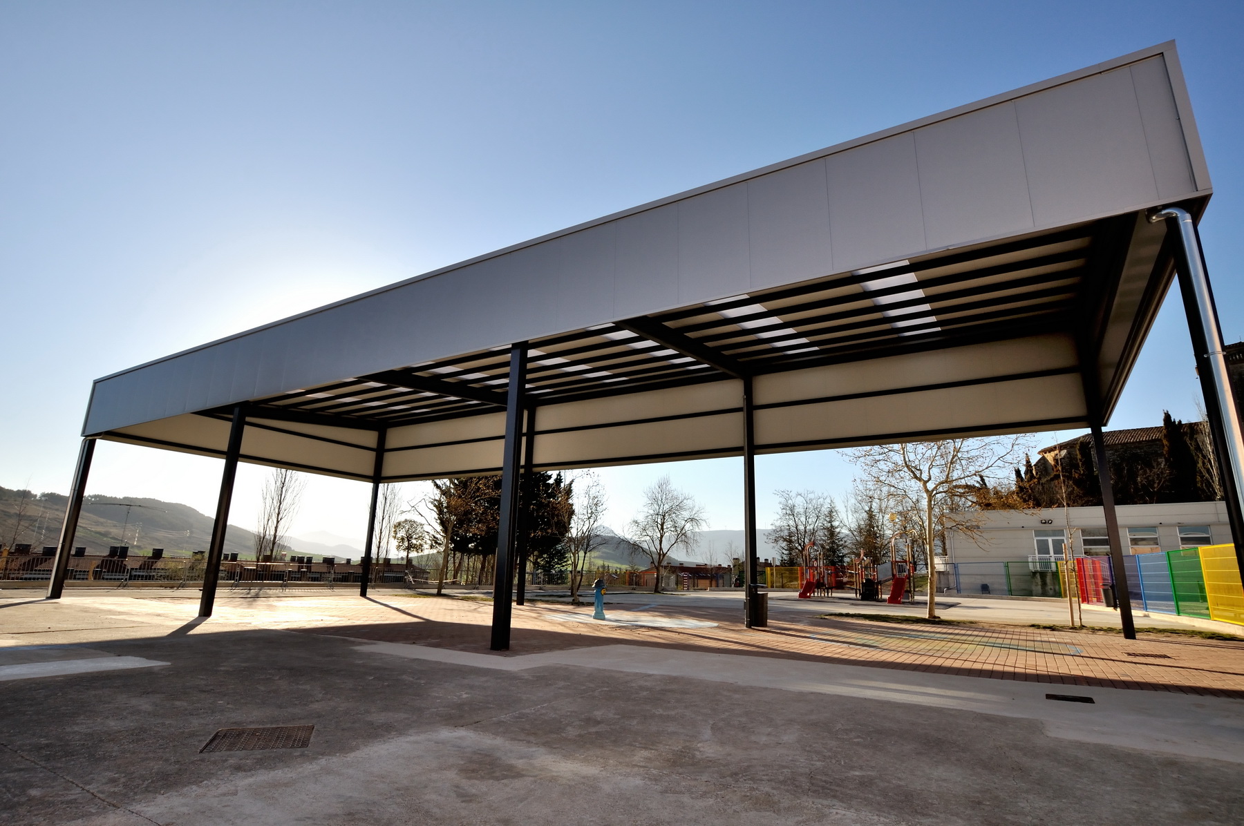El proyecto responde al programa de necesidades señalado por el Ayuntamiento, en el que la necesidad principal era la construcción de una estructura para la cubrición de una zona de juegos infantiles para atender a las necesidades de los usuarios del Colegio Público San Miguel.